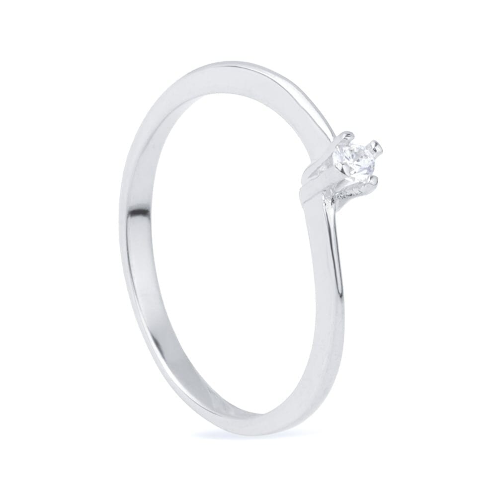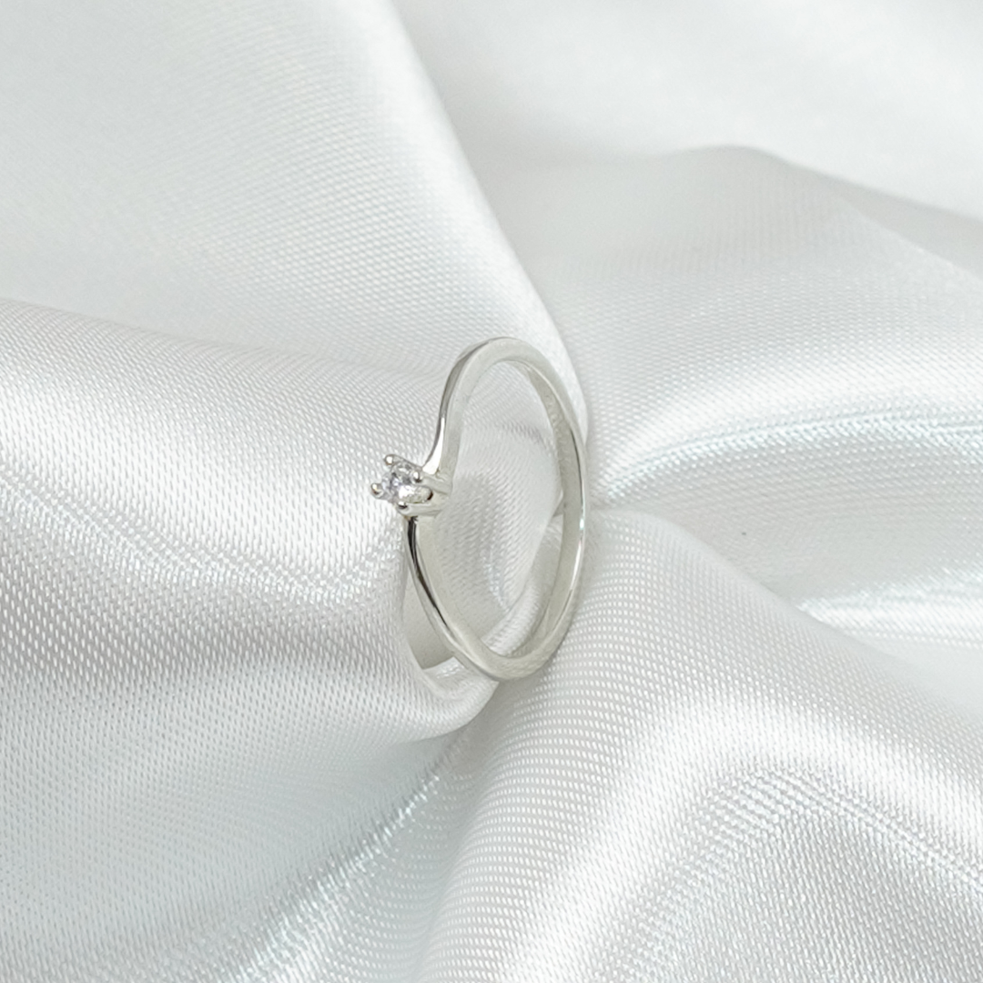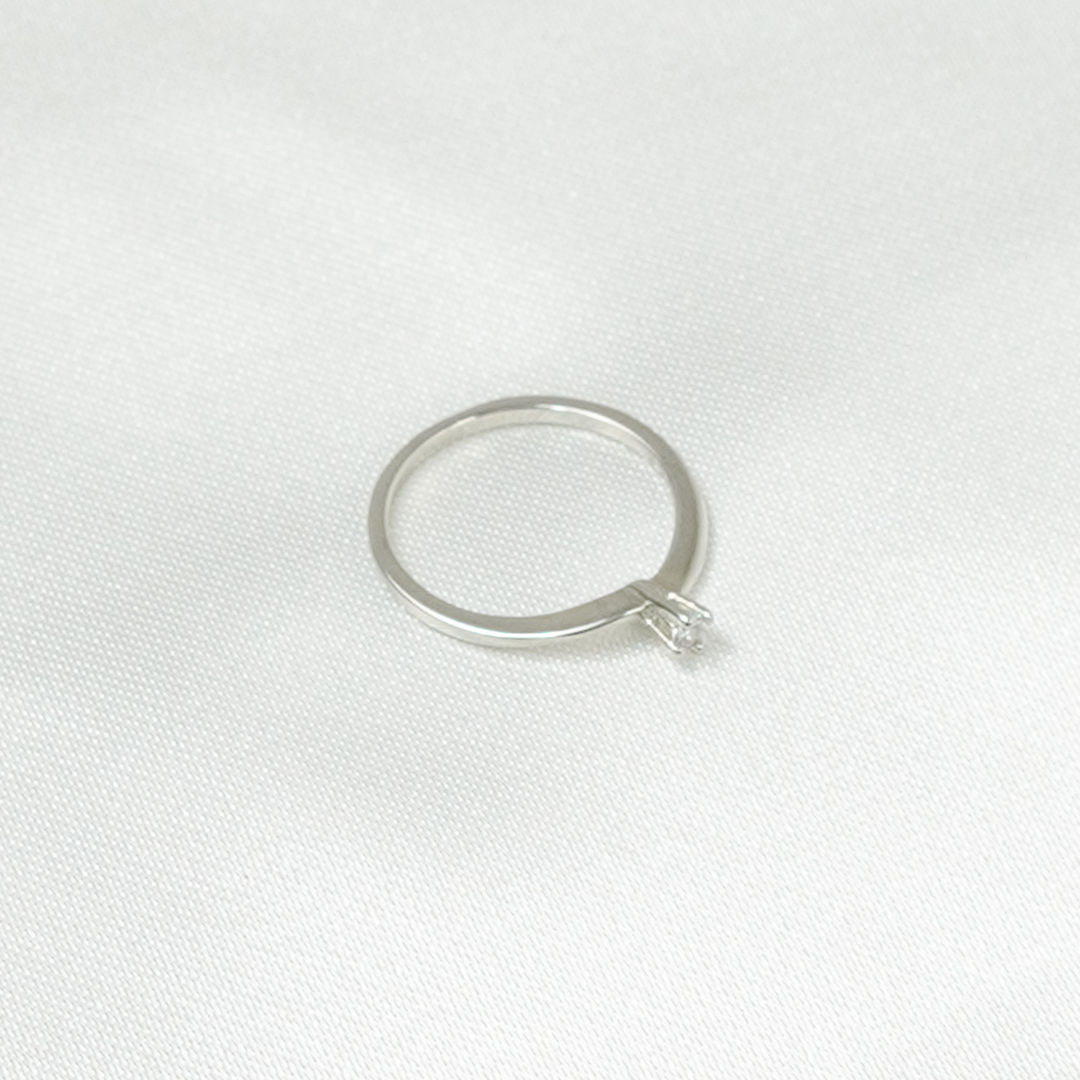 Anel Beatriz Prateado Solitário Delicado com Zircônia
