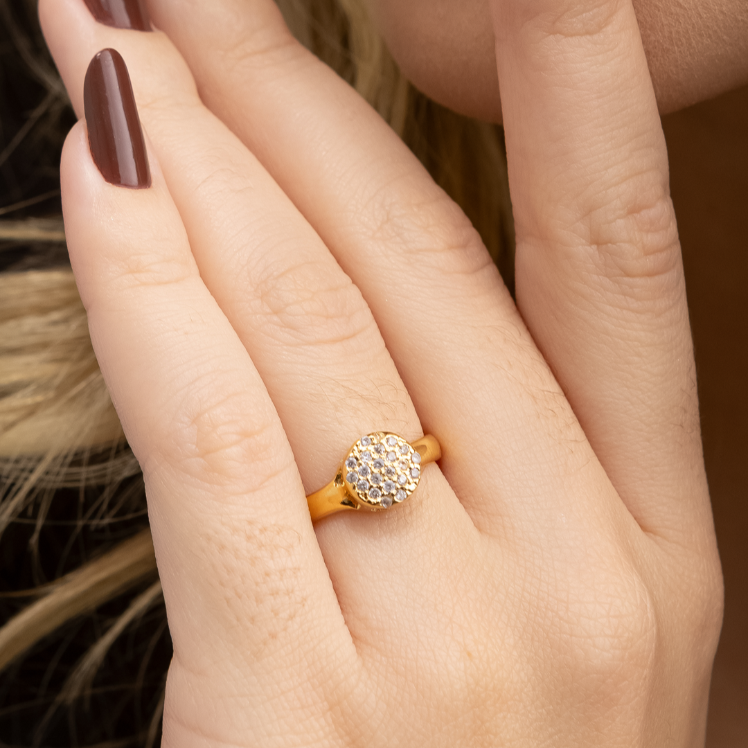 Anel Clarice Dourado Chuveirinho Cravejado de Zircônia