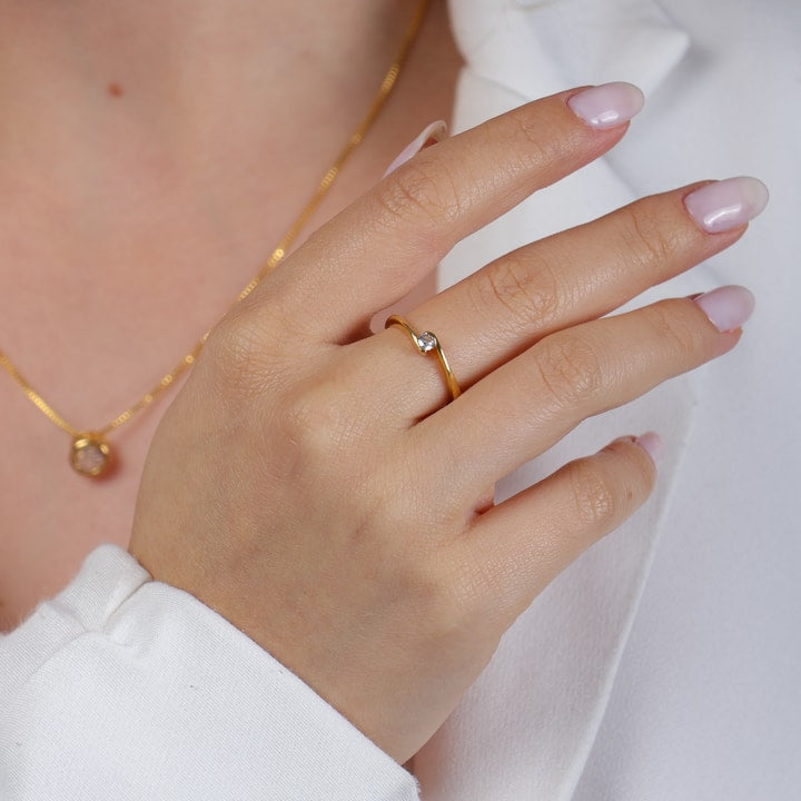Anel Laura Dourado Solitário Ponto de Luz Zircônia
