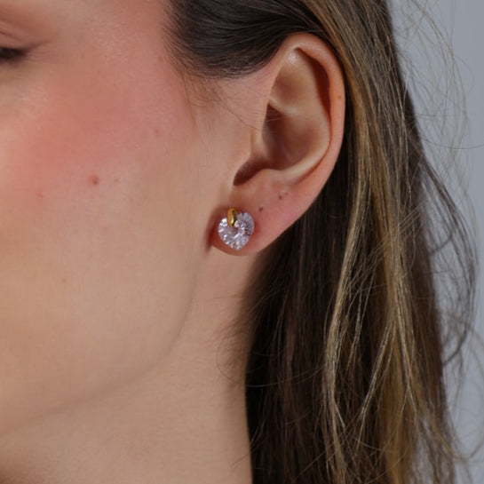 A zircônia clara em destaque contrasta suavemente com o dourado, criando uma estética minimalista e marcante.