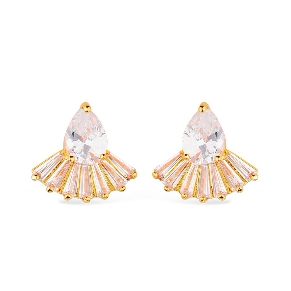 Brinco Melina Dourado Gota e Coroa com 8 Pedras de Zircônia