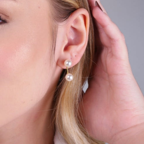 Duas pérolas separadas de forma sutil criam leveza visual com presença silenciosa e refinada.