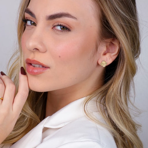 O Brinco Sellena é uma celebração à delicadeza feminina, com design floral dourado que traduz beleza e exclusividade.