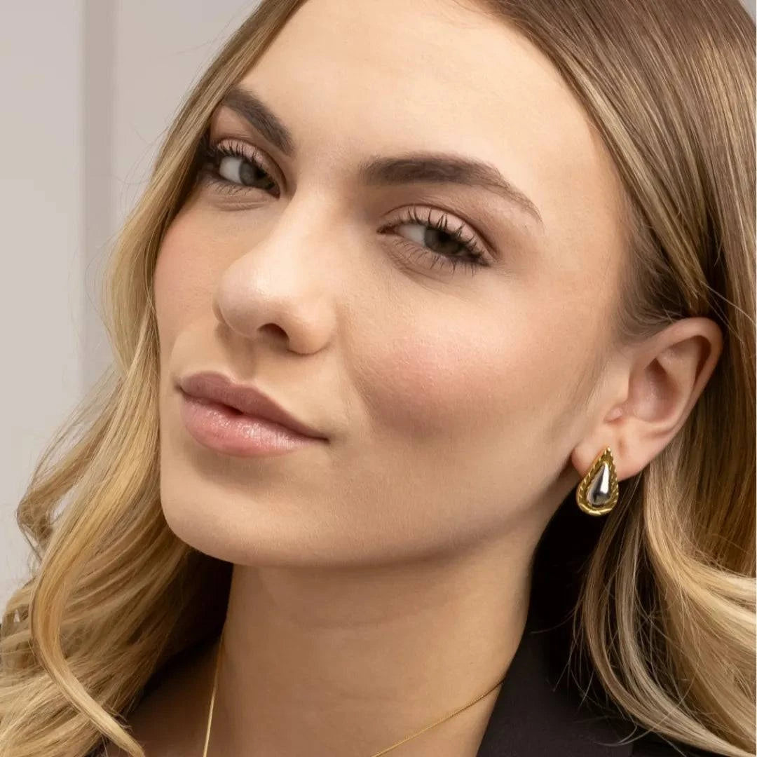 Brinco Taillor Dourado e Prateado Formato Gota