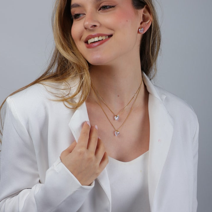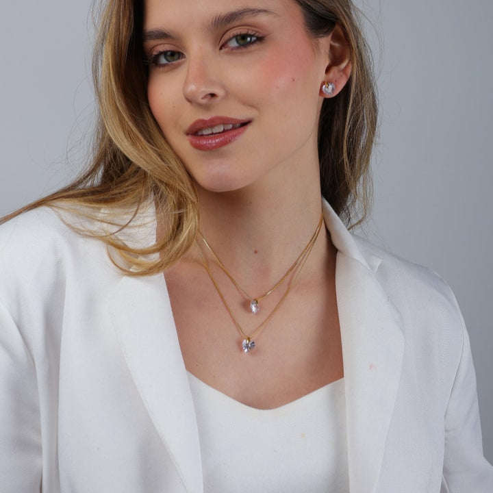 Colar Millan Dourado Duplo de Coração em Cristal