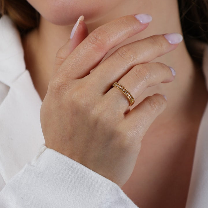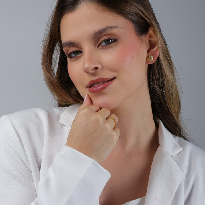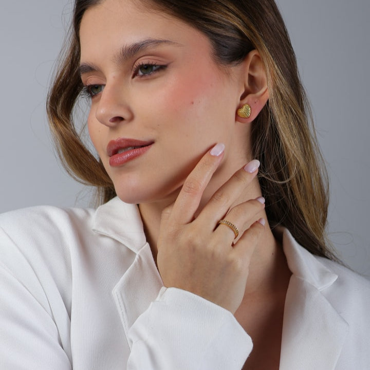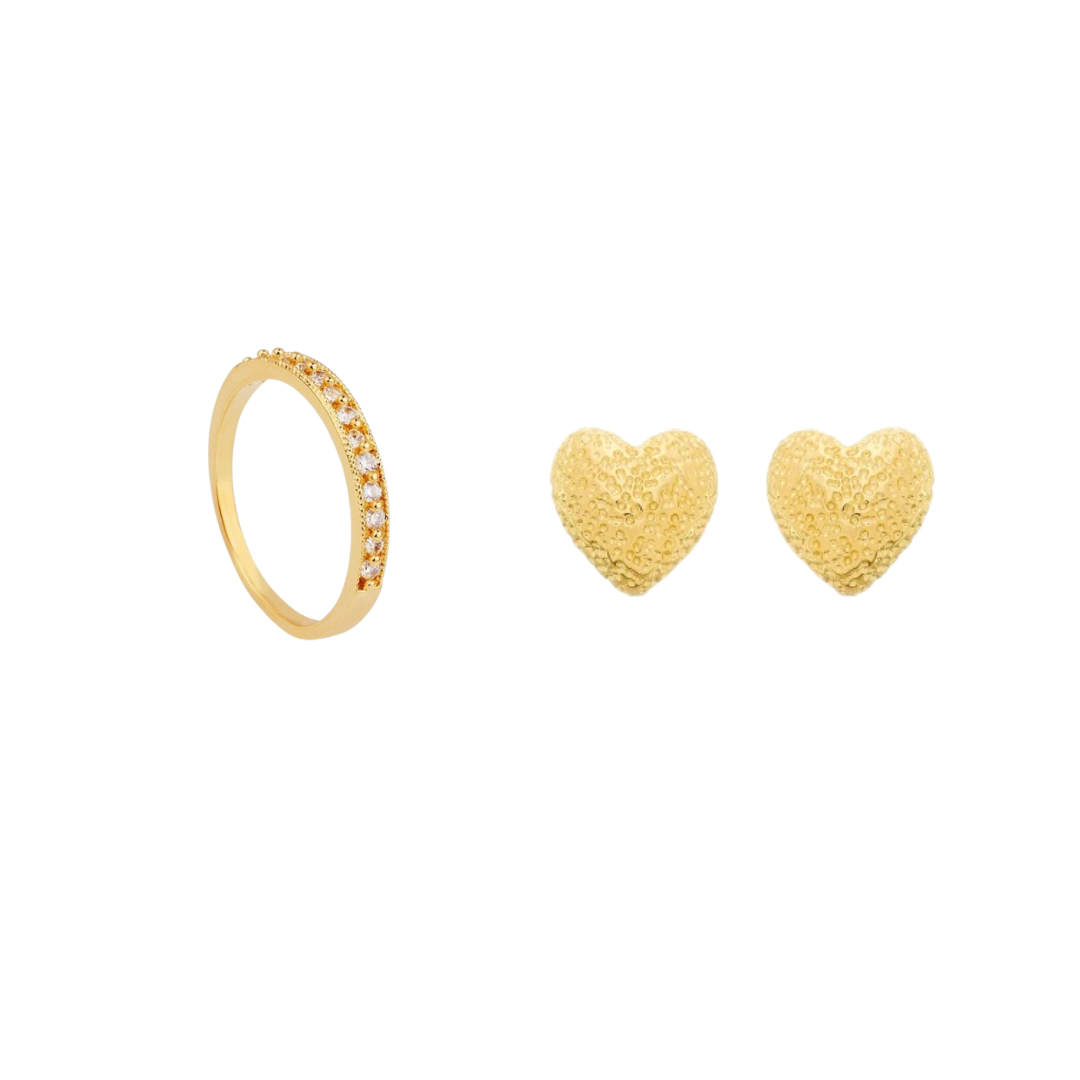 O Kit Flora Duo apresenta um equilíbrio refinado entre o brilho das zircônias e os detalhes do design irregular, destacando sua elegância naturalmente.
