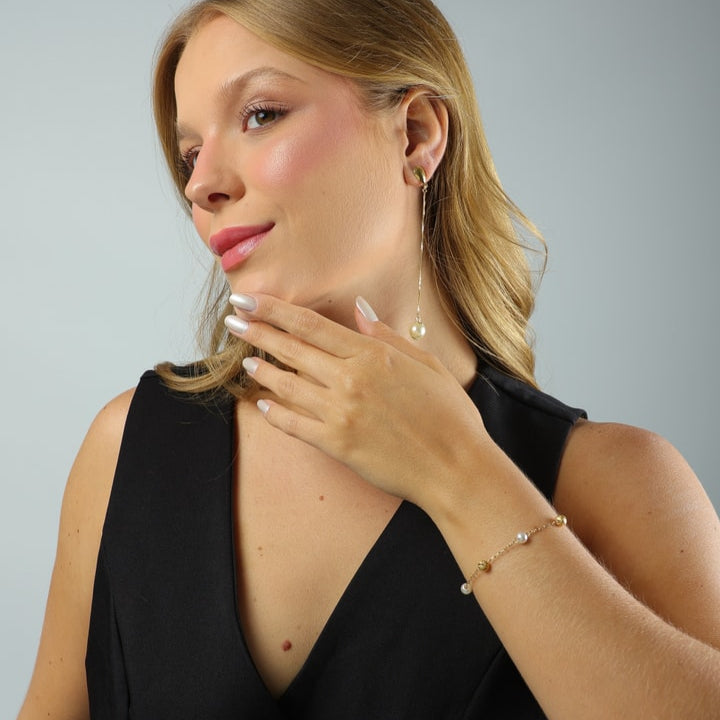 Combinando o brilho das pérolas e o charme das esferas vazadas, o conjunto traz um visual refinado, capaz de elevar qualquer look para momentos especiais.