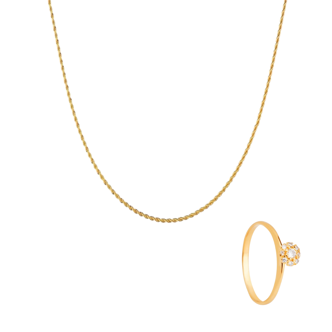 Com design refinado, o anel e o colar trazem detalhes minuciosos, proporcionando requinte para qualquer ocasião.